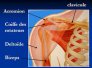 De plus, la tête de l'humérus est entourée de la coiffe des rotateurs, constituée de cinq muscles se prolongeant par leurs tendons. Cet ensemble muscles - tendons sert à donner la force pour lever le bras et le tourner. Il contribue également à la stabilité de l'épaule.